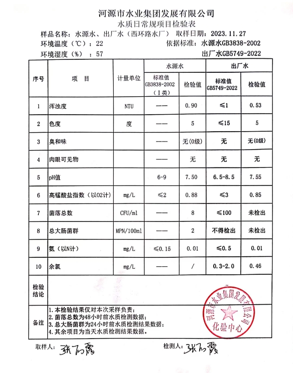 2023年11月27日水質檢驗報告 ???