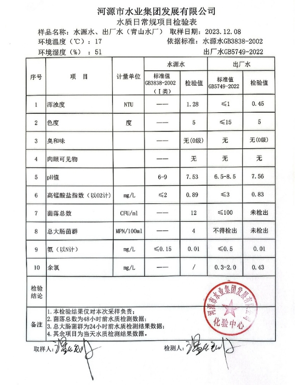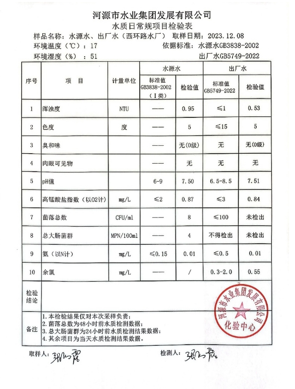 2023年12月8日水質(zhì)檢驗報告 ???