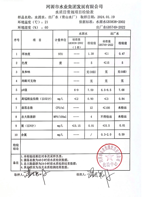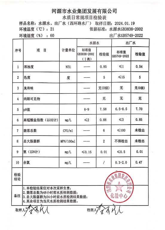 2024年1月19日水質(zhì)檢驗(yàn)報(bào)告 ???