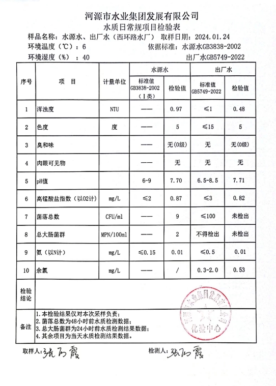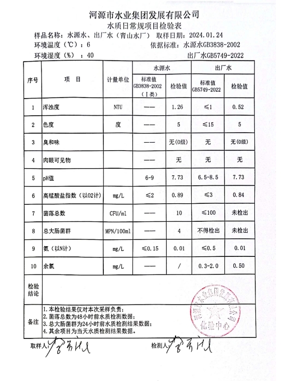 2024年1月24日水質(zhì)檢驗報告 ???