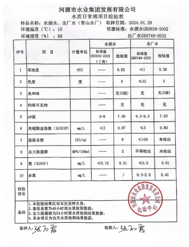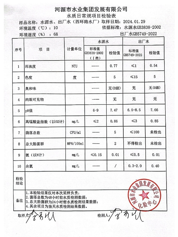 2024年1月29日水質(zhì)檢驗報告 ???