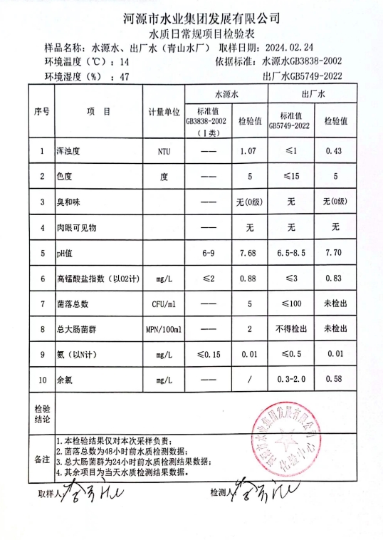 2024年2月24日水質(zhì)檢驗(yàn)報(bào)告 ???