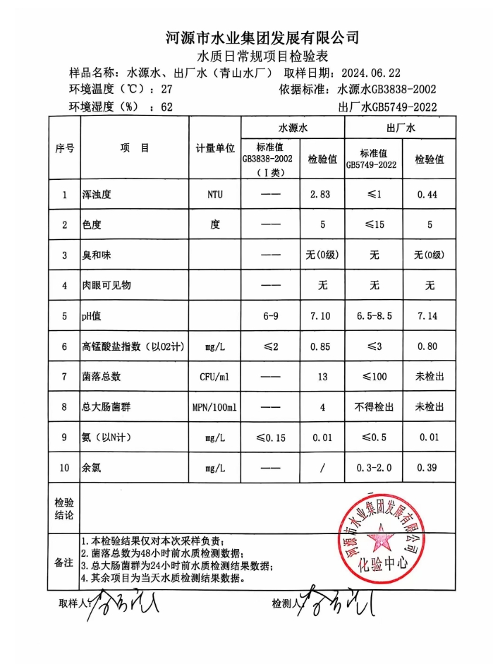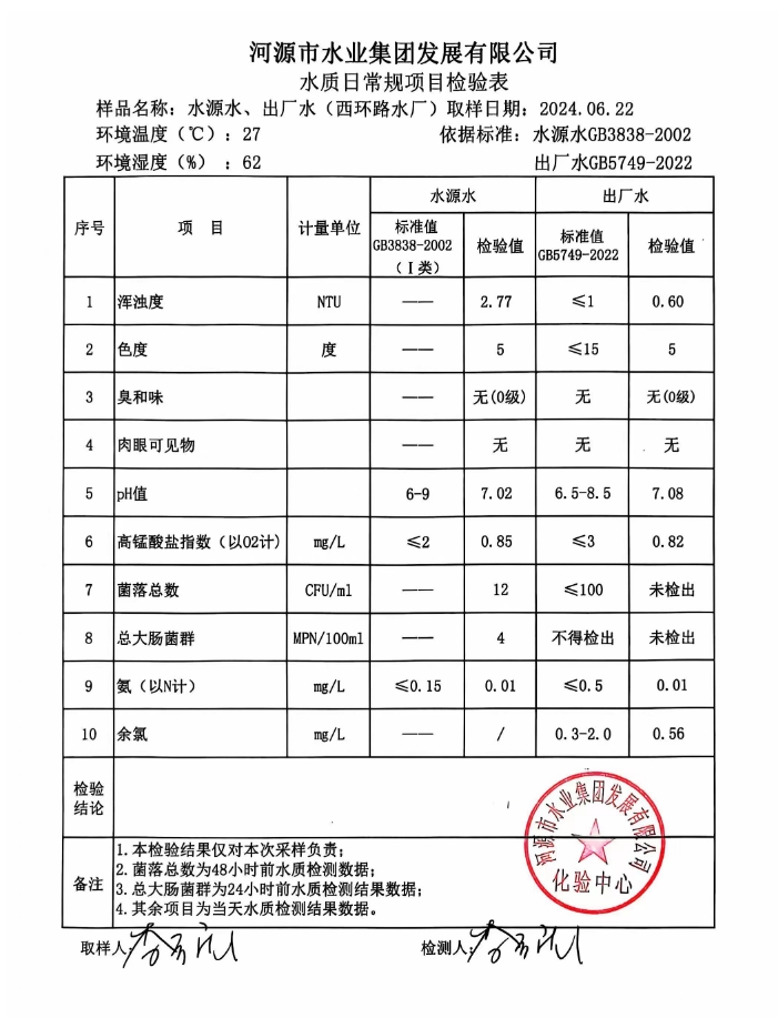 2024年6月22日水質檢驗報告