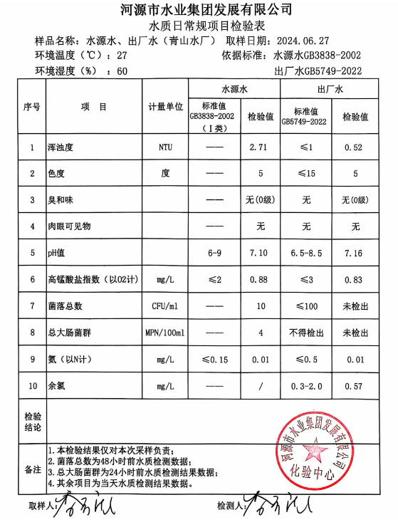 2024年6月27日水質檢驗報告