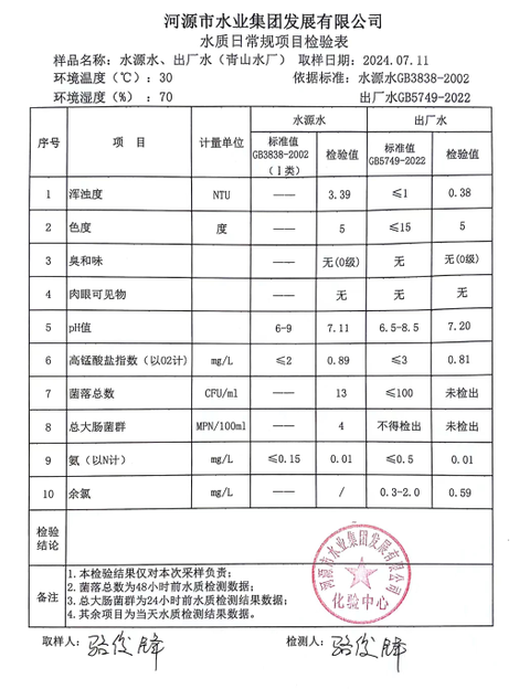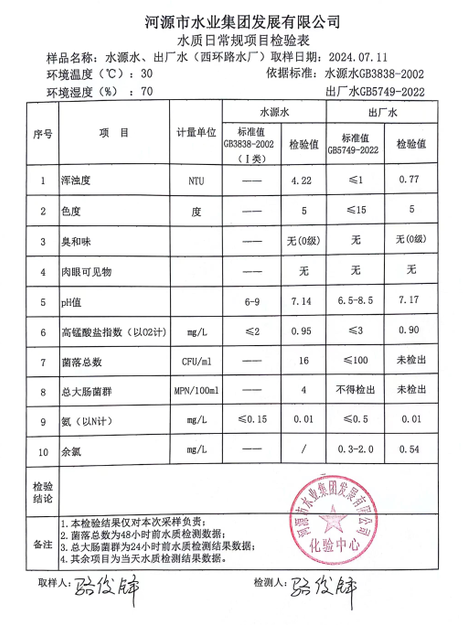 2024年7月11日水質檢驗報告