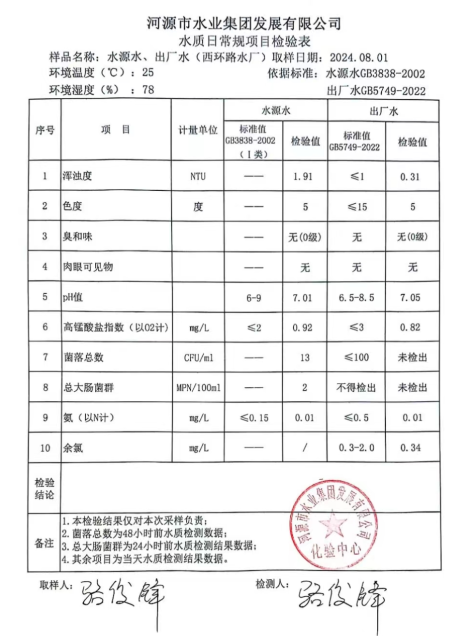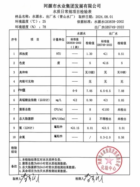 2024年8月1日水質(zhì)檢驗(yàn)報(bào)告