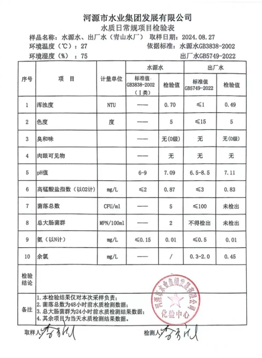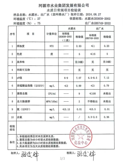 2024年8月27日水質檢驗報告