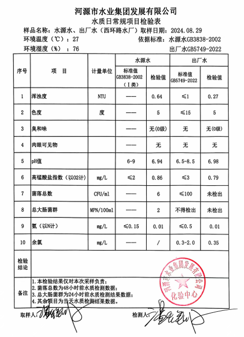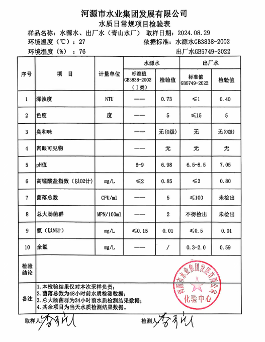2024年8月29日水質檢驗報告