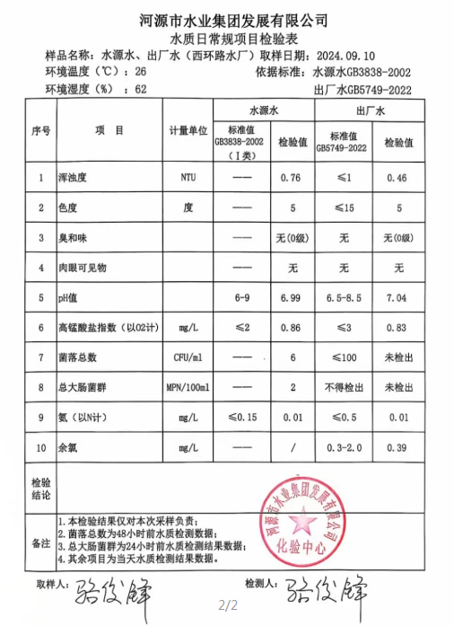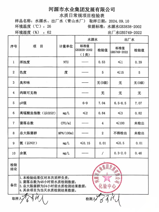 2024年9月10日水質(zhì)檢驗(yàn)報告