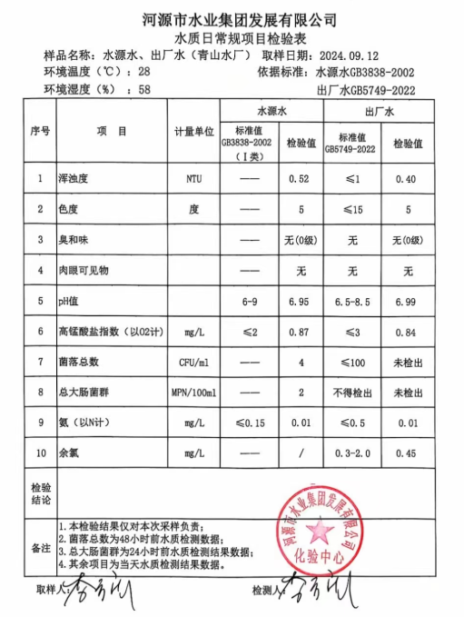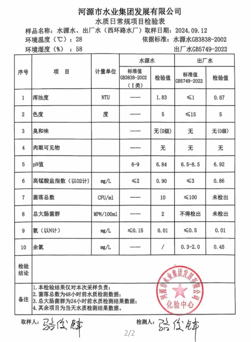 2024年9月12日水質(zhì)檢驗(yàn)報(bào)告