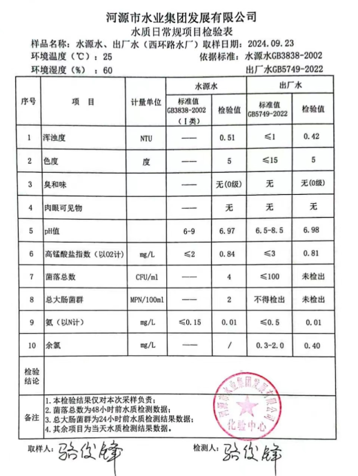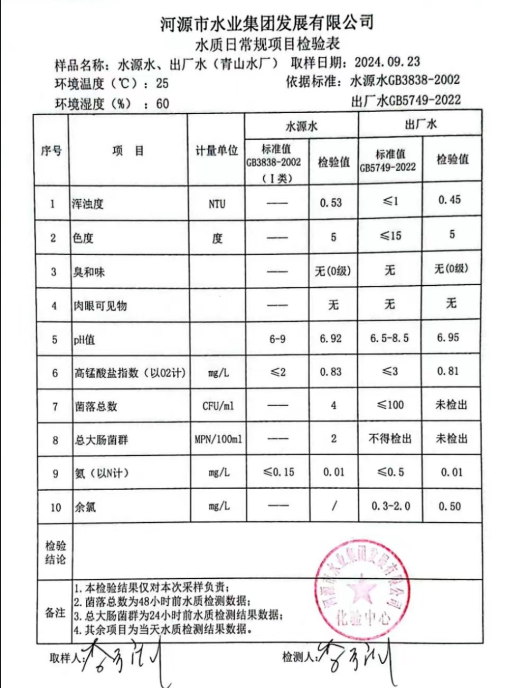 2024年9月23日水質檢驗報告
