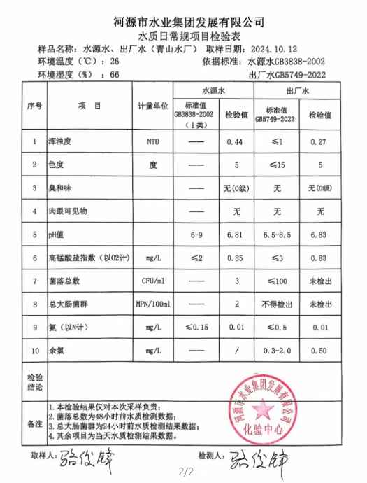 2024年10月12日水質檢驗報告